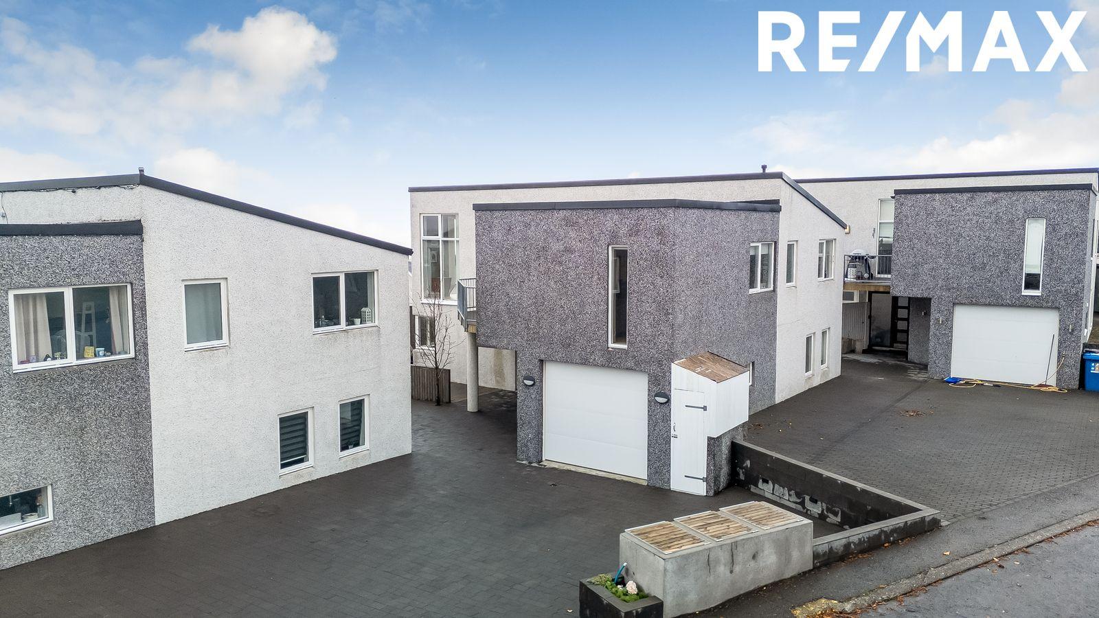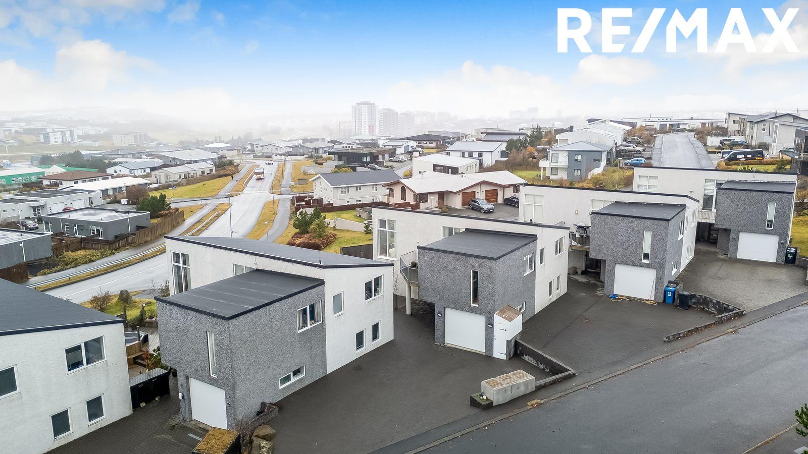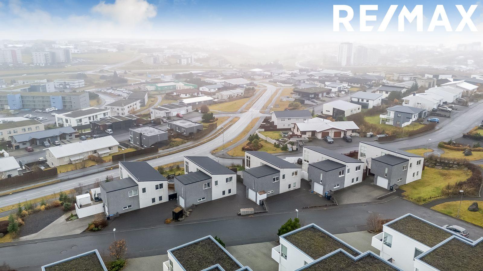 Lóð: Rúmgóð hellulögð innkeyrsla með snjóbræðslu. Á baklóð hússins er timburverönd með skjólveggjum og heitum potti.