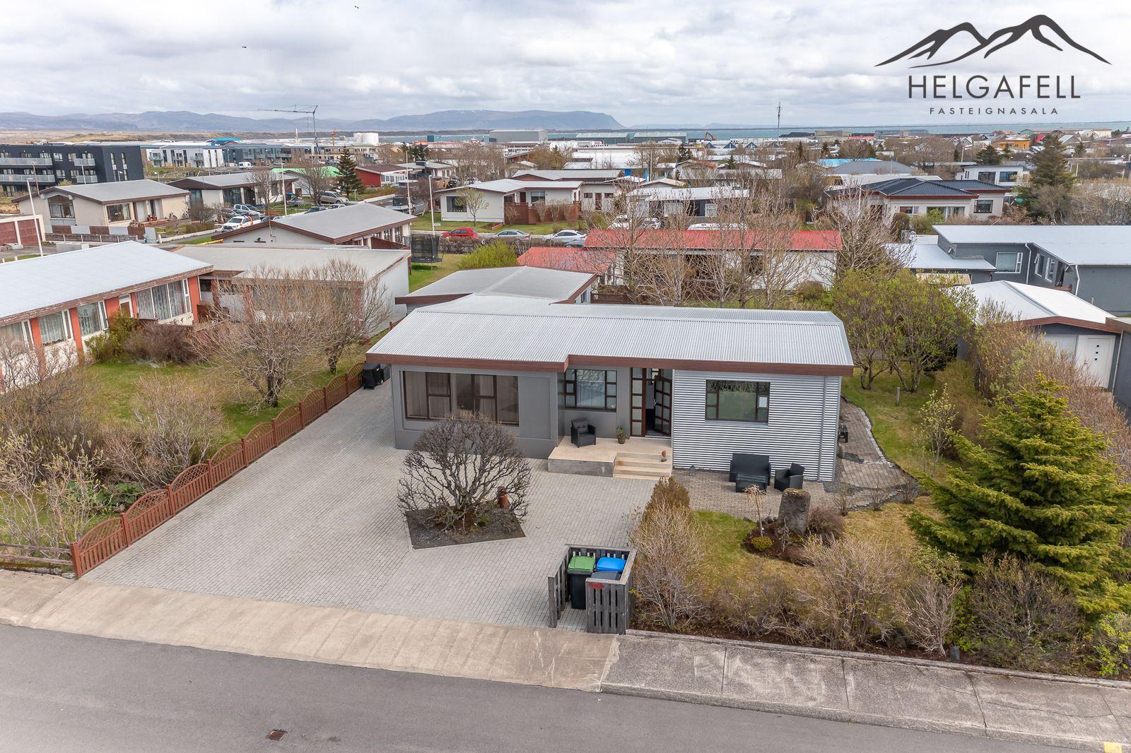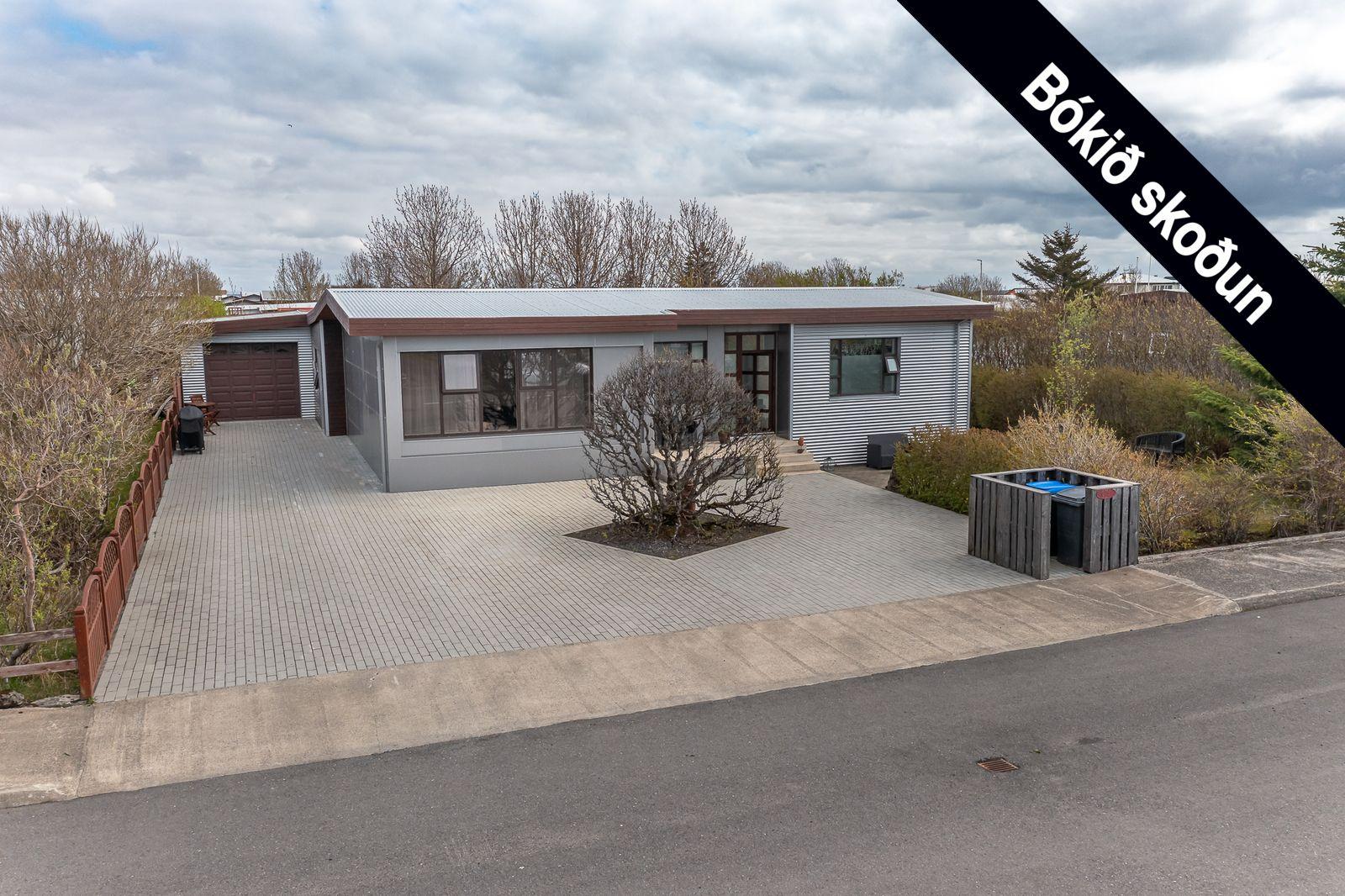 Búið er að minnka bílskúr niður í ca. 30 fm og setja 2 svefnherbergi og gestasnyrtingu í staðinn. Raunstærð íbúðarhlutans er því ca. 176,5 fermetrar. Stór suðaustur sólpallur með heitum potti.