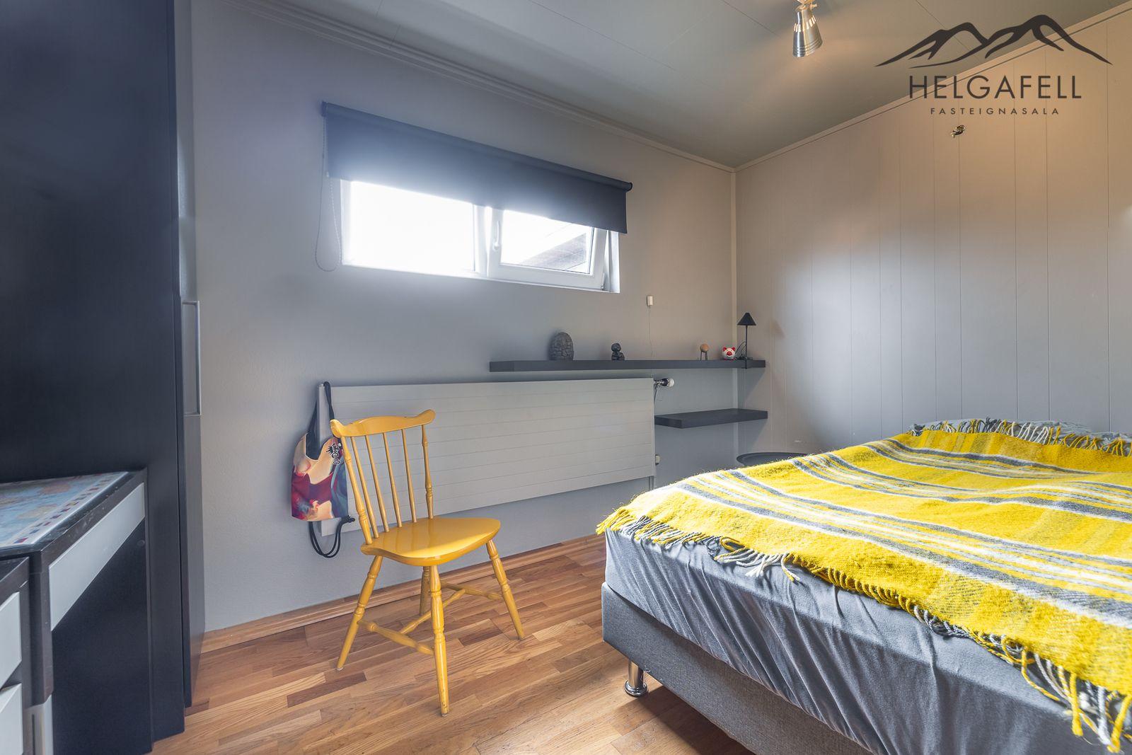 Hjónaherbergi: Einstaklega rúmgott með góðu skápaplássi, harðparket á gólfi. Var upphaflega tvö svefnherbergi og auðvelt er að breyta því aftur í tvö svefnherbergi.
