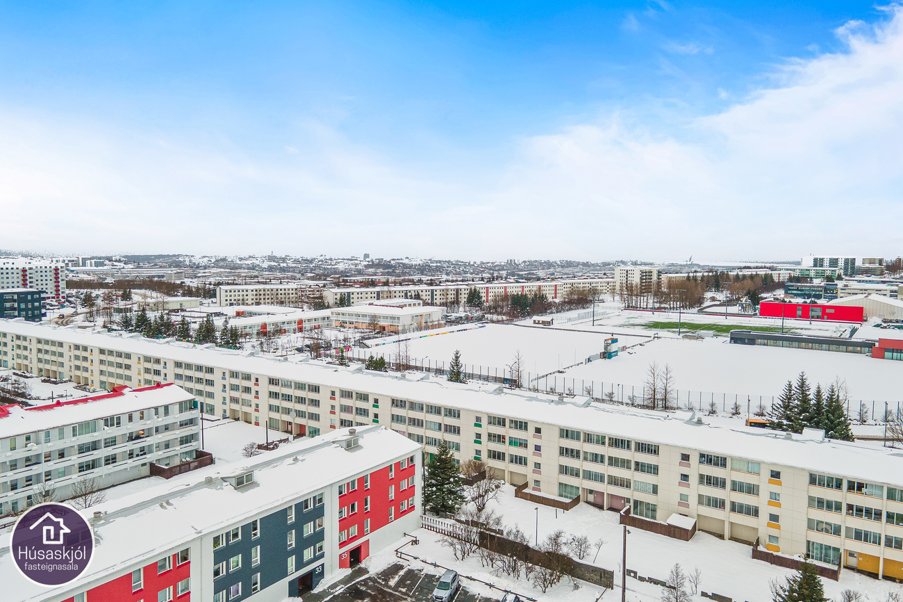 Na sprzedaż mieszkanie trzypokojowe o powierzchni użytkowej 73,3 m², z piwnicą o powierzchni 5,8 m² oraz zabudowanym balkonem o powierzchni 5 m², co daje łączną powierzchnię 84,1 m². Nieruchomość znajduje się w zadbanym budynku wielorodzinnym przy ulicy Gyðufell 16 w Reykjavíku.
