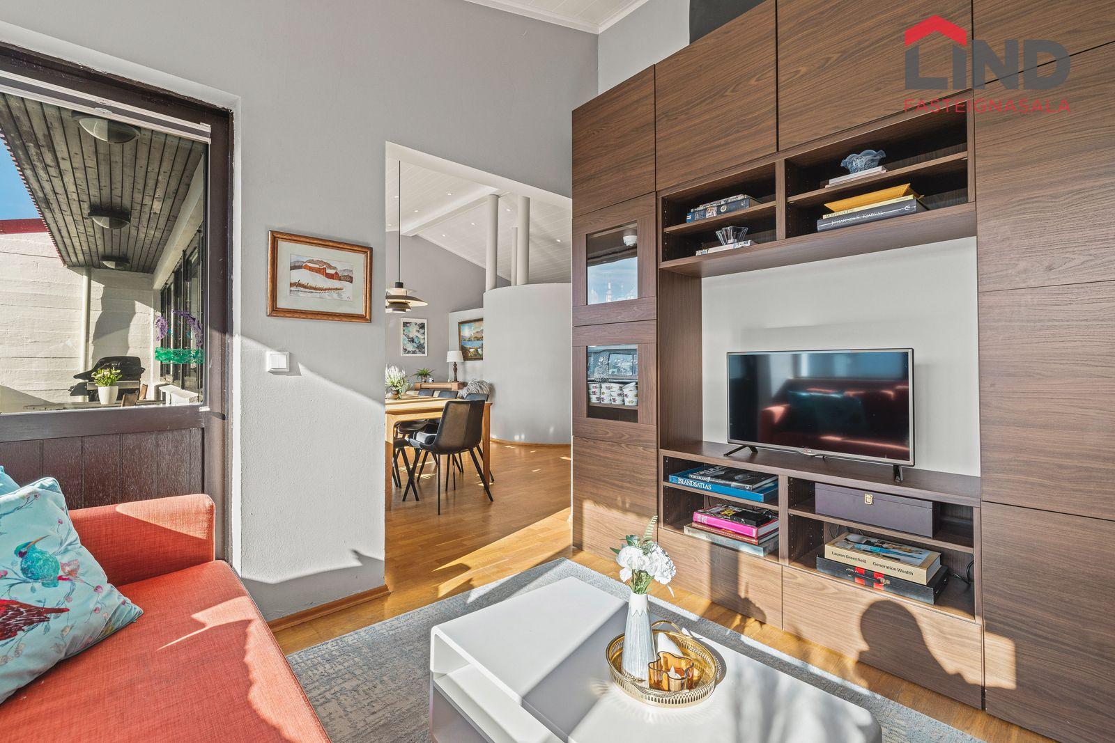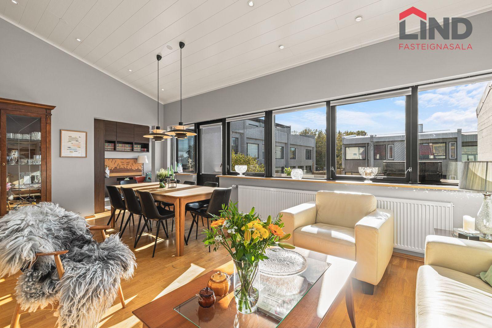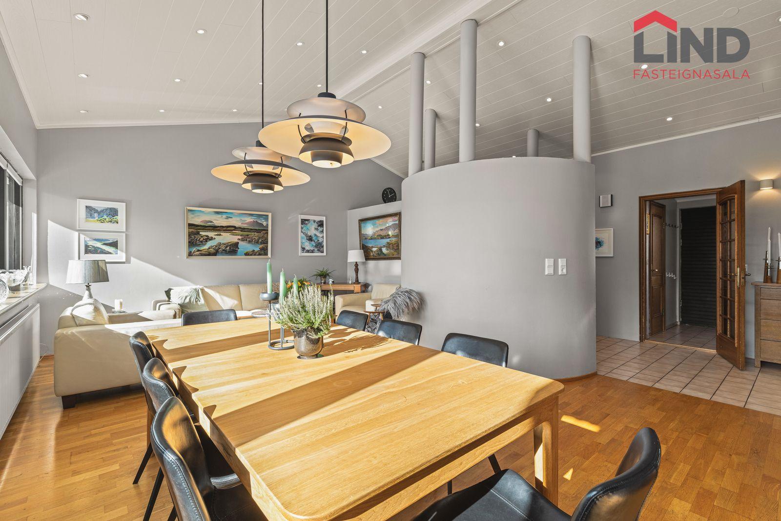 Hannes Steindórsson, löggiltur fasteignasali, í síma 699-5008 eða hannes@fastlind.isEignin skiptist í:Forstofu, 3-4 svefnherbergi, eldhús, tvær stofur, baðherbergi, sjónvarpsherbergi, gestasalerni, þvottahús, geymslu og bílskúr.Nánari lýsing eignar:Efri hæð:Forstofa: er með flísalögðu gólfi og fataskáp.