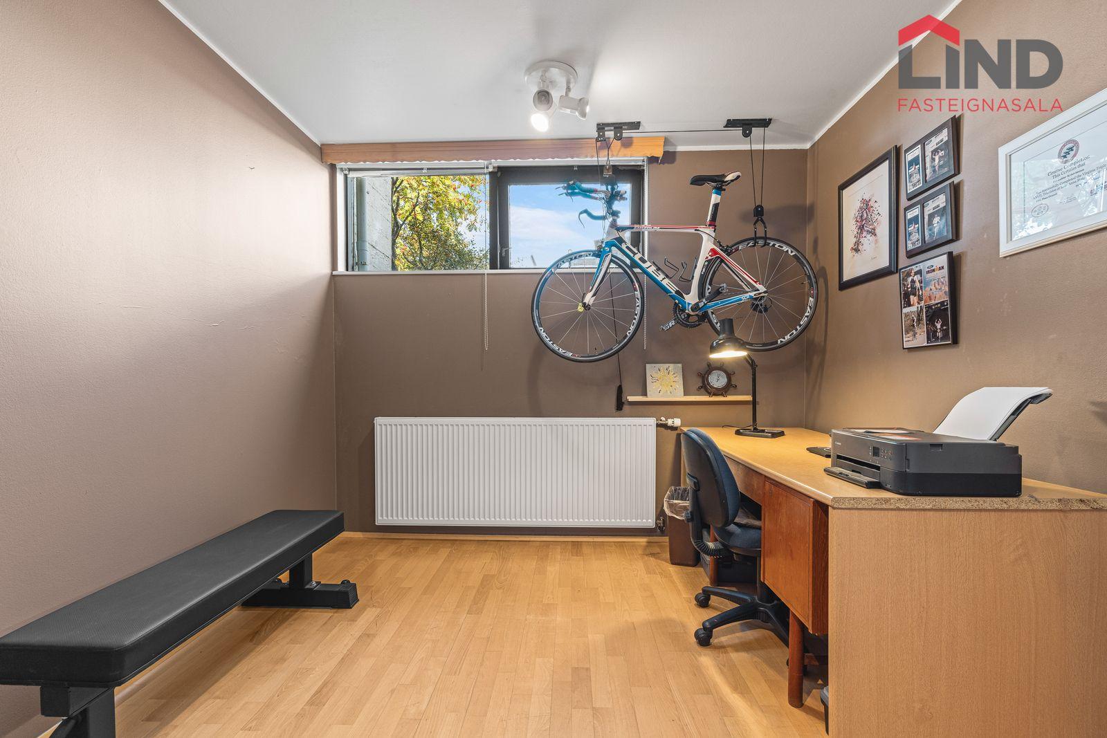 Geymsla: með harðparketi á gólfi. Er nýtt sem svefnherbergi.