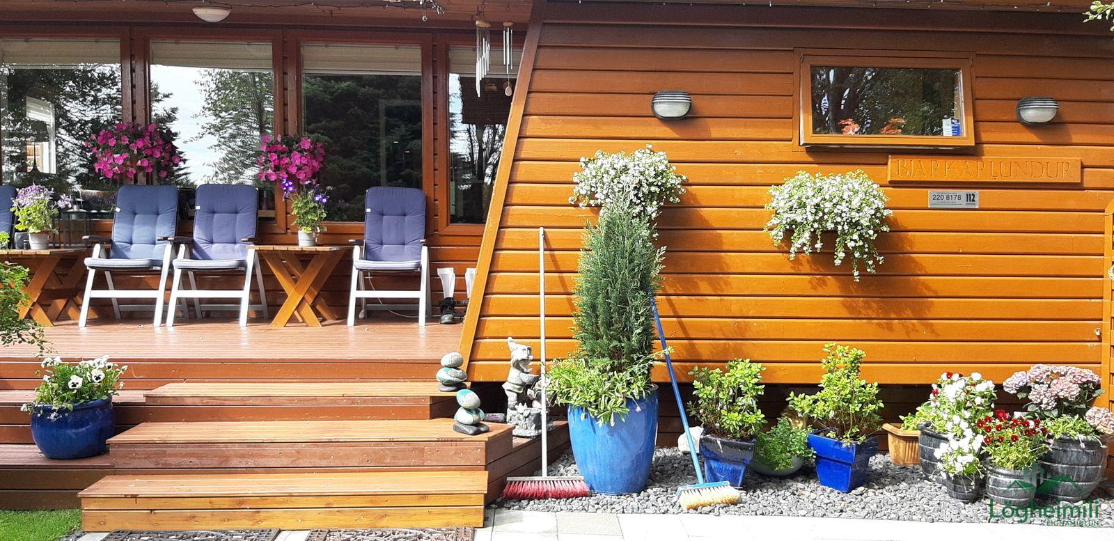 Svefnherbergi: Eitt svefnherbergi þar sem útgengt er út á suður og vesturhluta sólpalls.