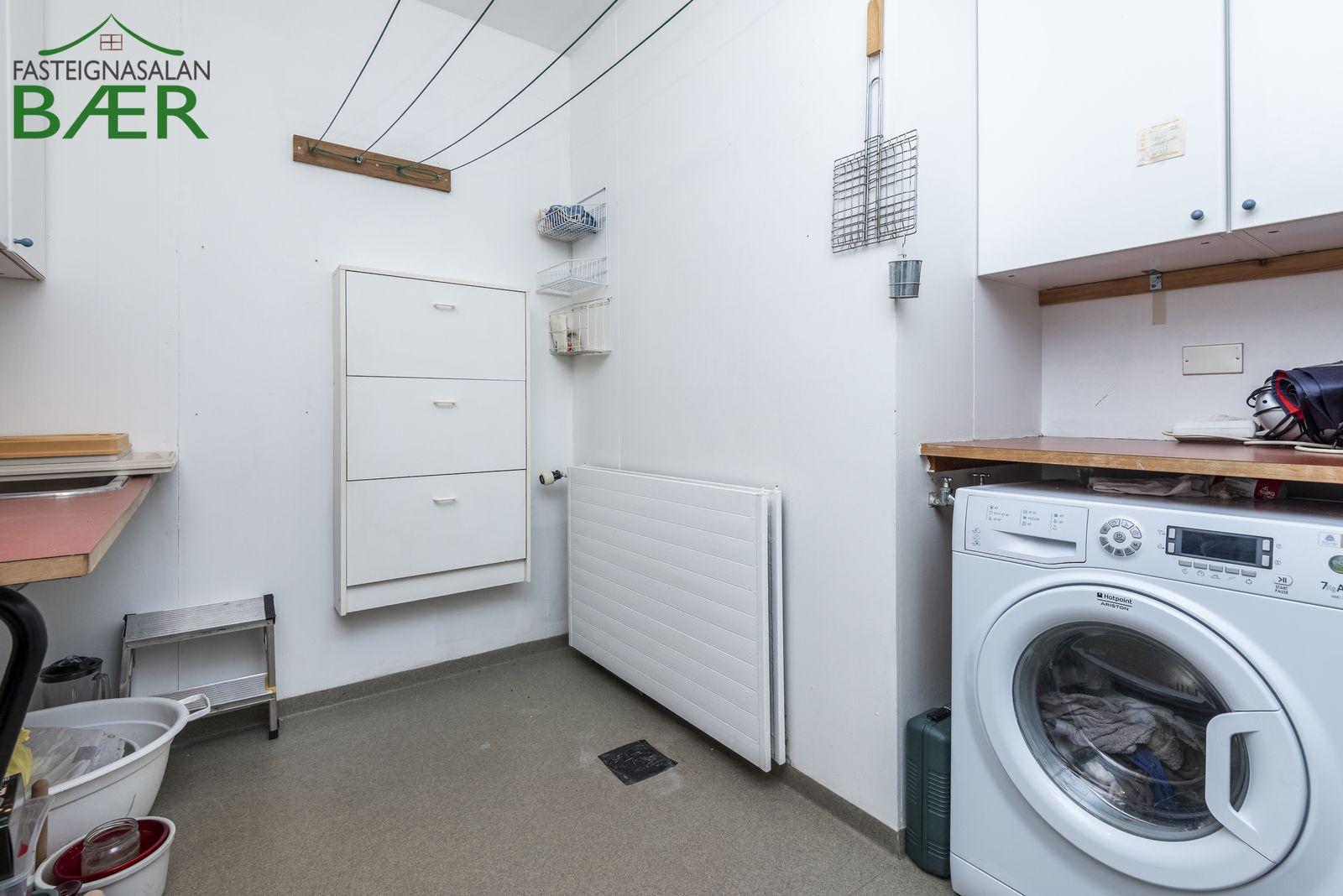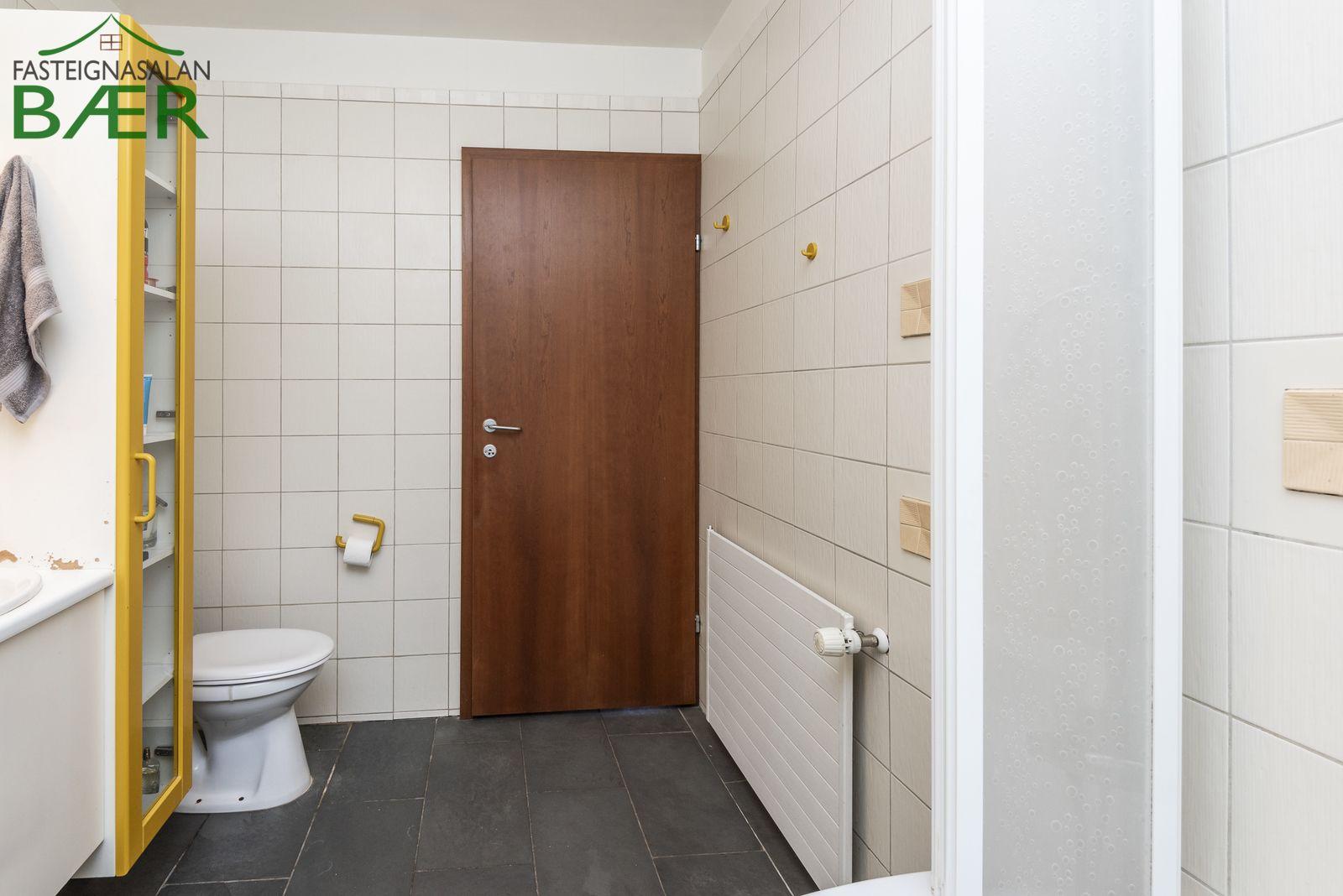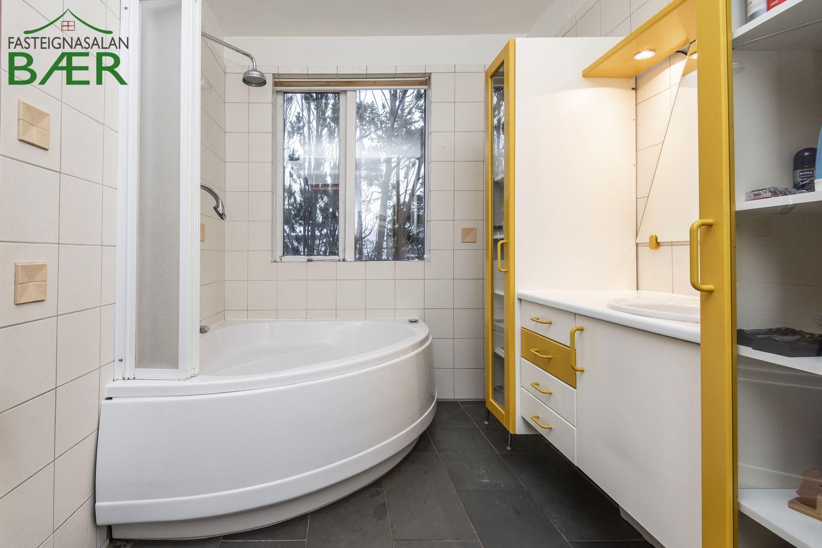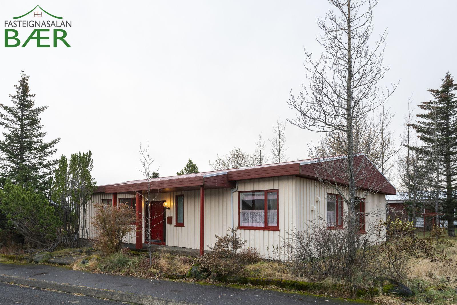 Nánari lýsing: Forstofa, fjögur svefnherbergi, stofa, eldhús, sjónvarpshol, baðherbergi, gestasnyrting, þvottaherbergi og bílskúr. Forstofa með flísum á gólfi og fataskáp. Gestasnyrting er inn af forstofu flísalögð í hólf og gólf og með glugga. Eldhús með flísum á gólfi, eldri innrétting og borðkrókur. Þvottaherbergi er inn af eldhúsi með flísum á gólfi, innréttingu og lúgu upp í þakgeymslu sem er yfir nánast öllu húsinu. Stofa/borðstofa með parket á gólfi og útgengi út á sólpall í suður. Sjónvarpshol með flísum á gólfi. Baðherbergi er flísalagt í hólf og gólf, hornbaðkar með sturtu, innrétting og salerni. Svefnherbergin eru 4 eitt með fataskápum, tvö með parketi og tvö með kork á gólfum. Bílskúr er rúmgóður og bjartur með geymslulofti yfir hluta skúrsins, tvær gönguhurðar og ein bílskúrshurð með rafmagns opnun. Húsið hefur verið í góðu viðhaldi: Þakkantur endurnýjaður 2021 á húsi og bílskúr, timburklæðning utan á húsi var endurnýjuð 2021 að stórum hluta, ásamt einum glugga í austur. Húsið er í enda götunnar og er opið svæði vestan við húsið sem ekki verður byggt á. Flott eign á góðum stað og stutt í alla þjónustu.